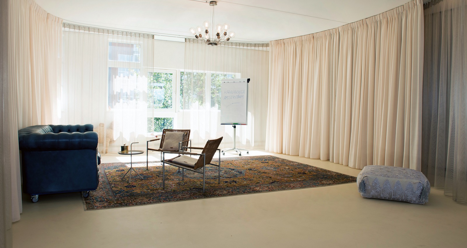 De KARAVANSERAI AMSTERDAM is centraal gelegen in de nieuw ontwikkelde wijk Houthaven aan het IJ aan de rand van het centrum. Twee sfeervol ingerichte ruimtes (2 maal 80 m2, onder de huidige omstandigheden beide geschikt voor groepen van 8 tot 12 personen voorzien van alle voorzorgsmaatregelen) vormen het hart van onze pleisterplaats voor leiders en professionals.
